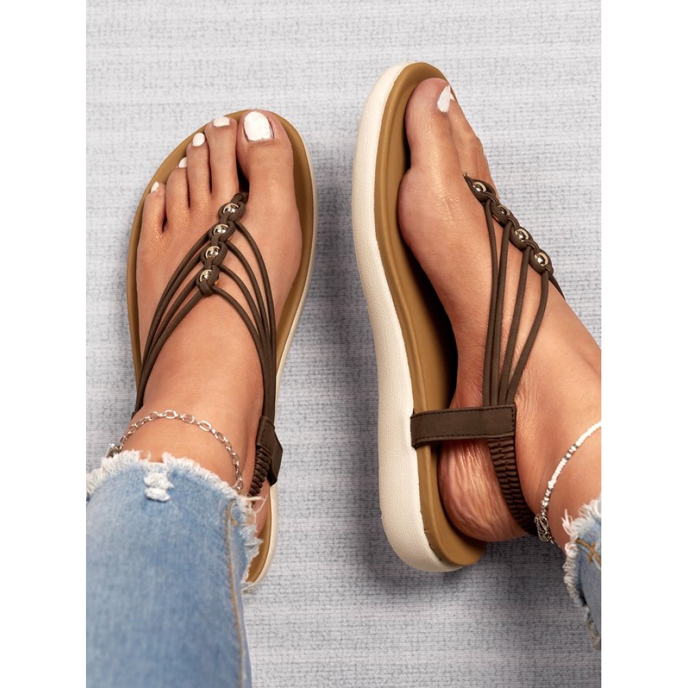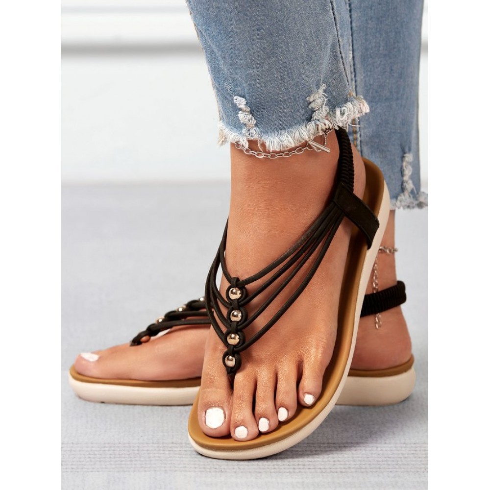 Beaded Thin Strap Bohemian Thong Sandals