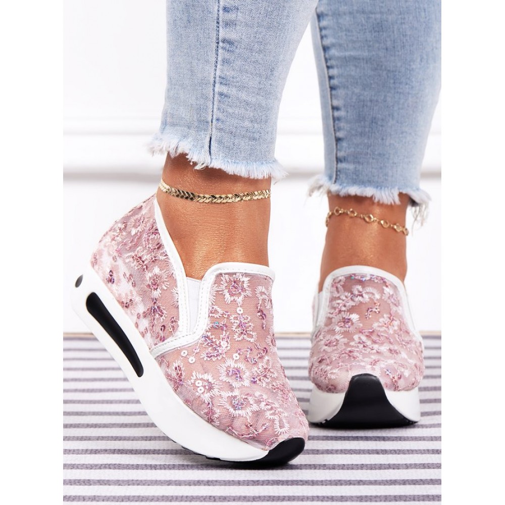 Breathable Floral Embroidery Slip-on Muffin Sneakers