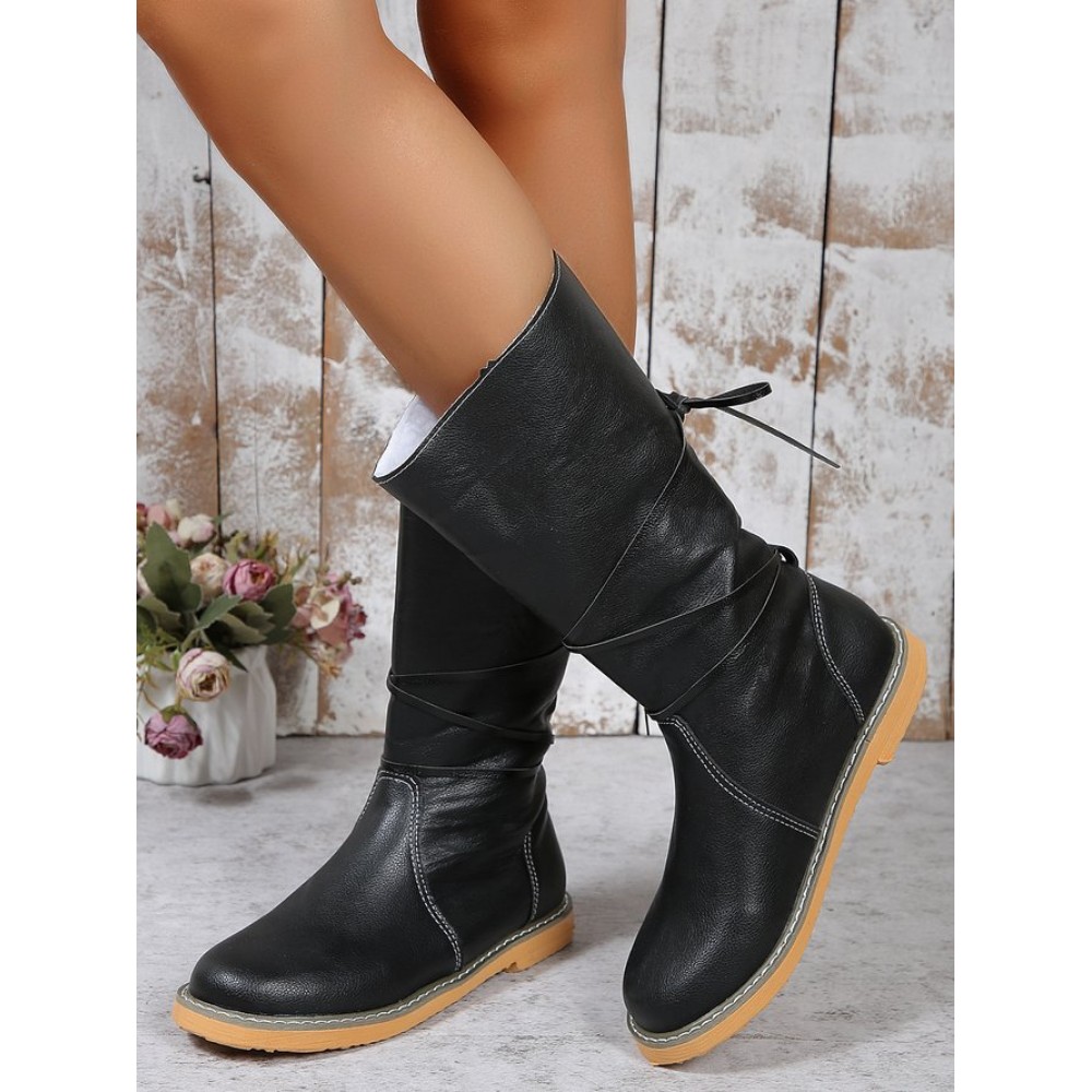 Comfortable Soft Lightweight Lace Up Chunky Heel Snow Boots Footwear
