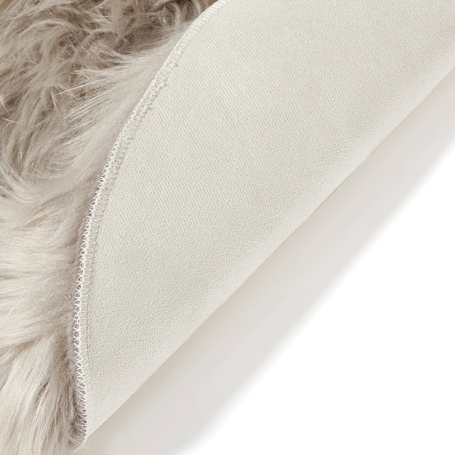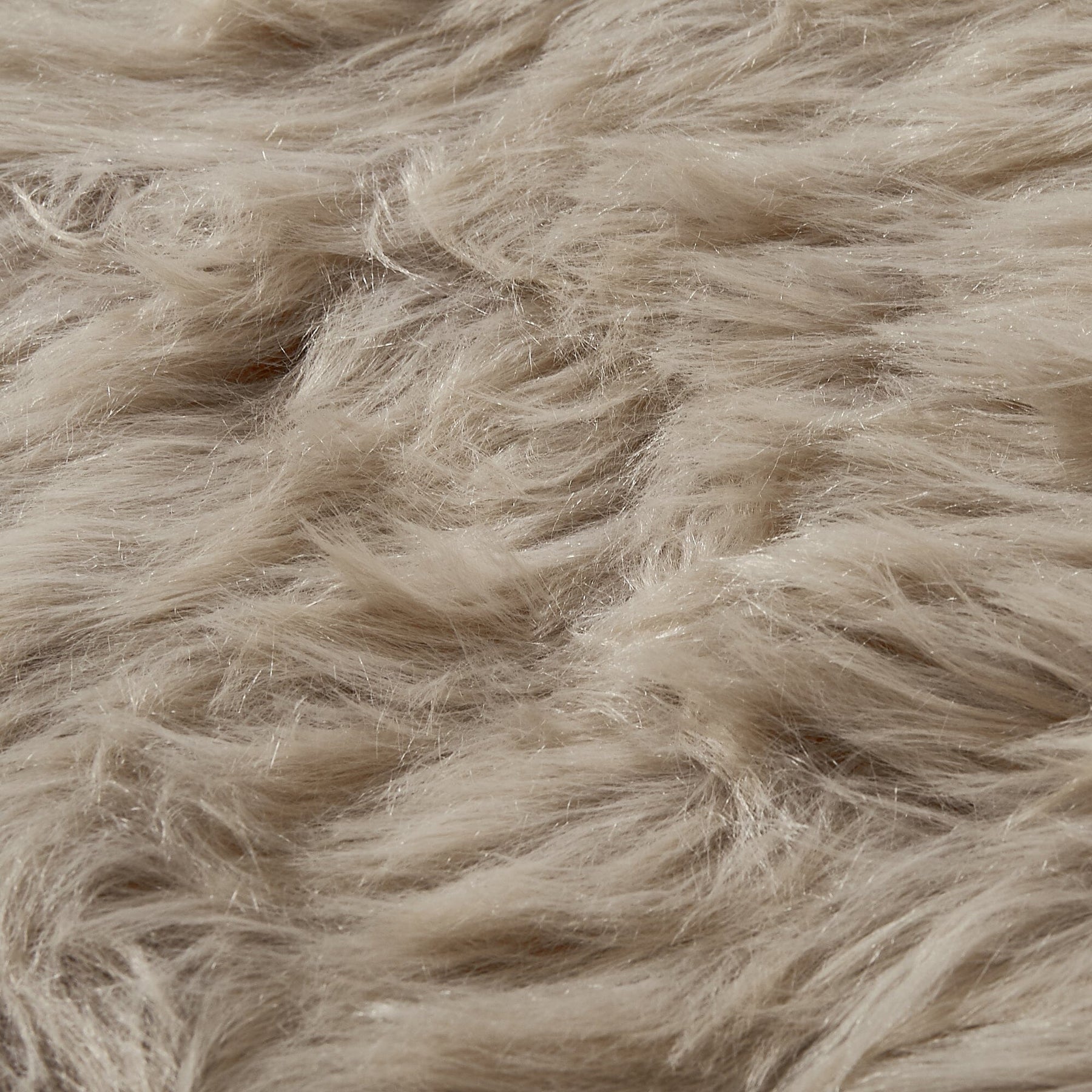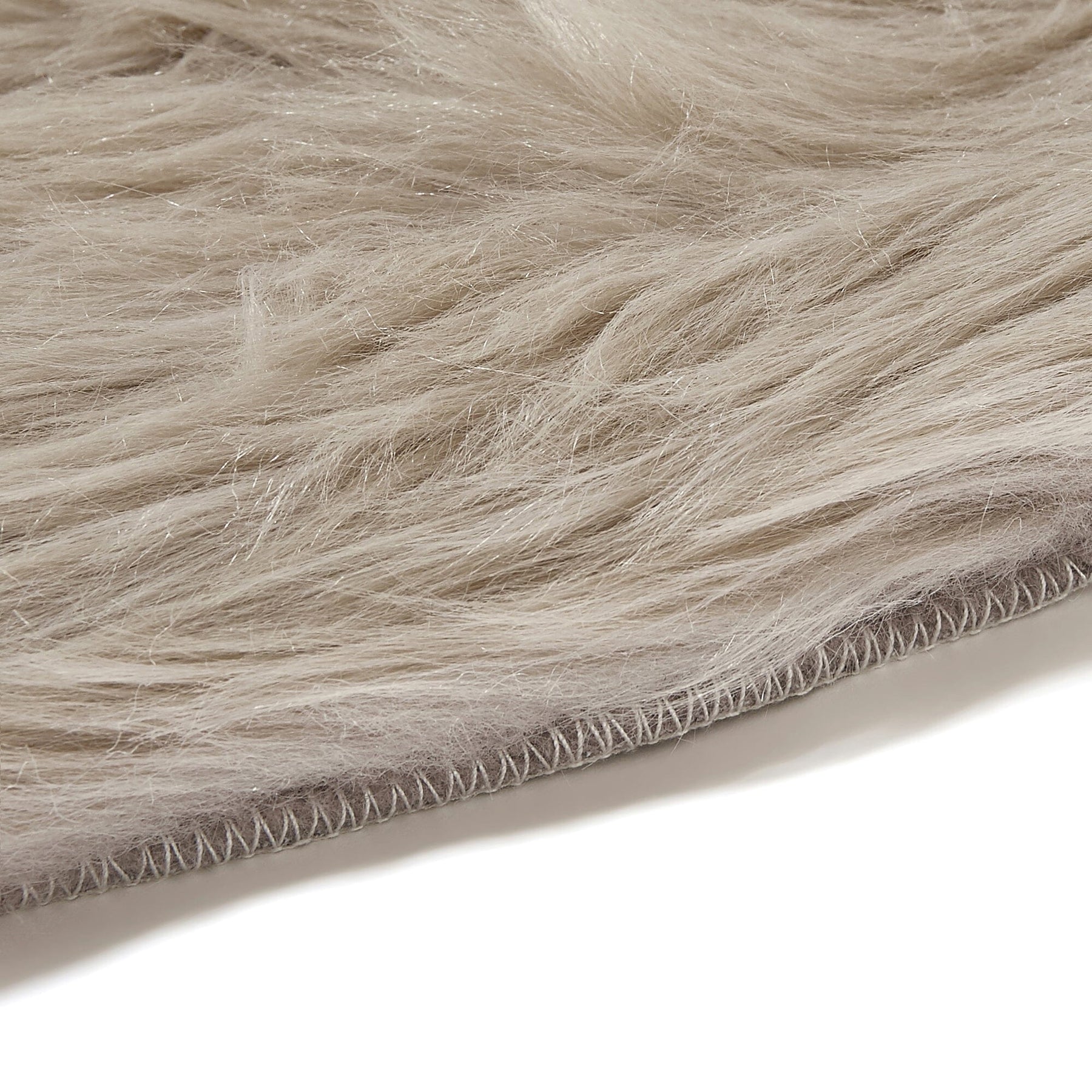 This rug has the same shape as a mouton rug, but is made of faux fur for a wintery look.