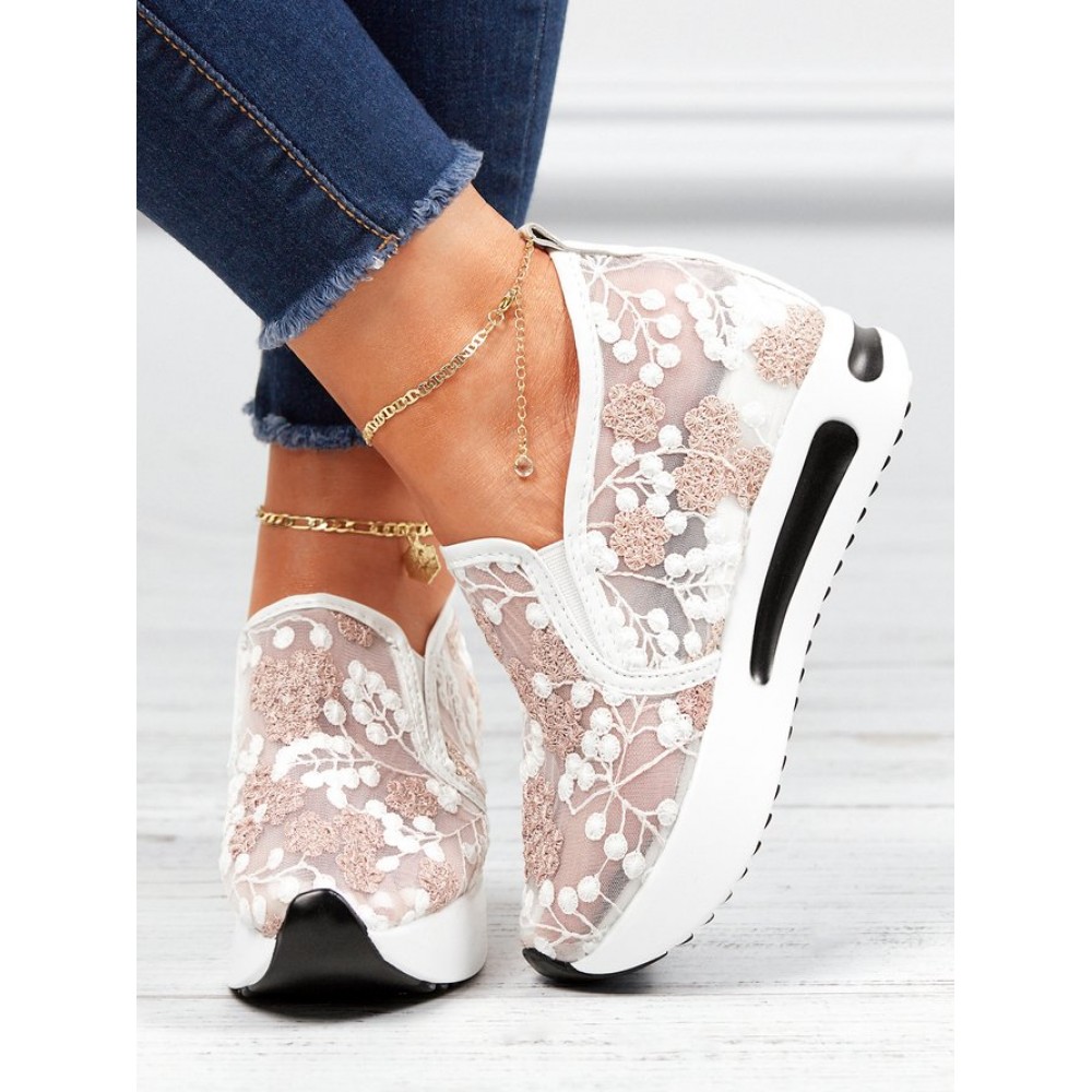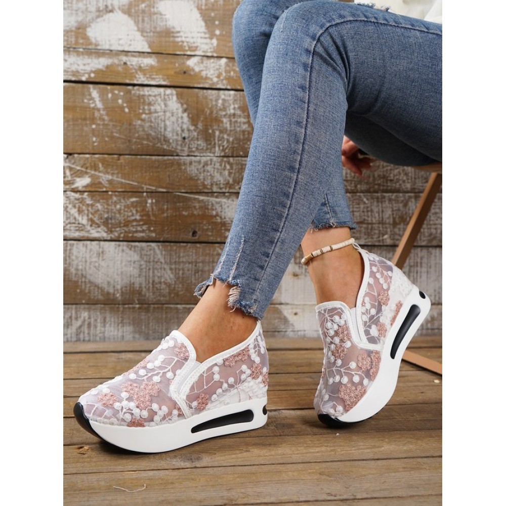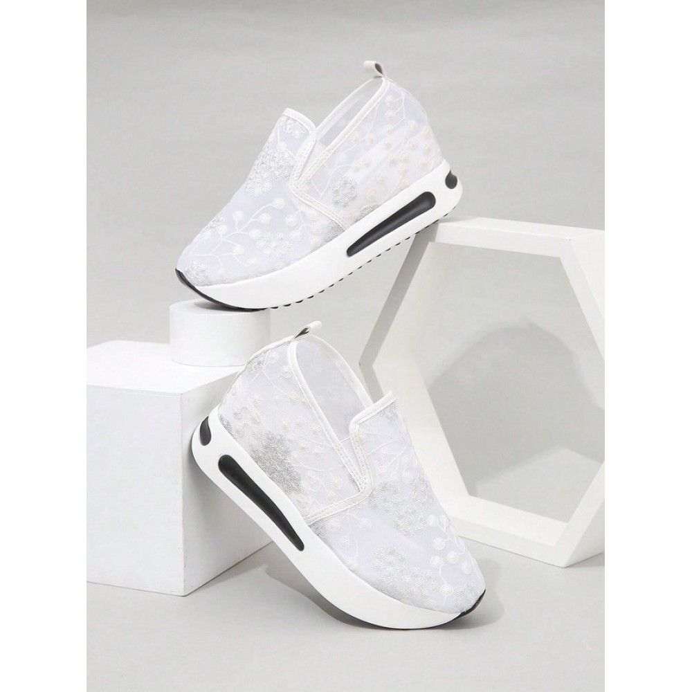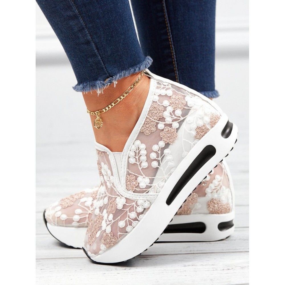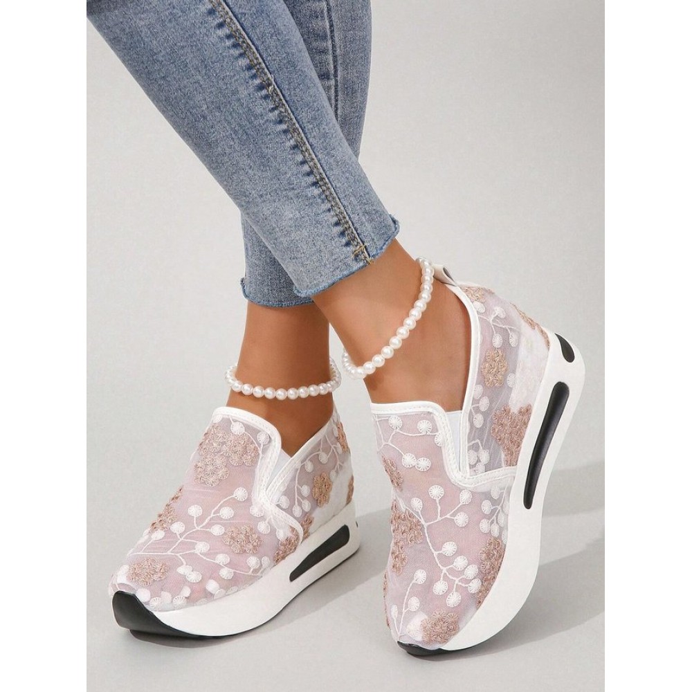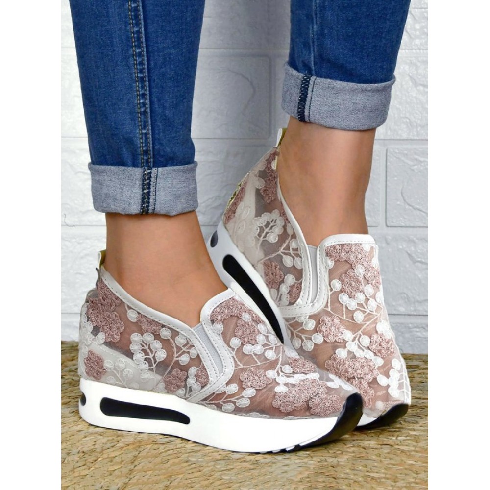 Floral Embroidery Breathable Sheer Mesh Sneakers