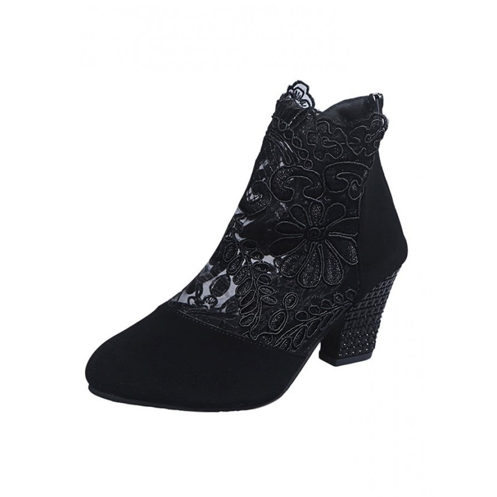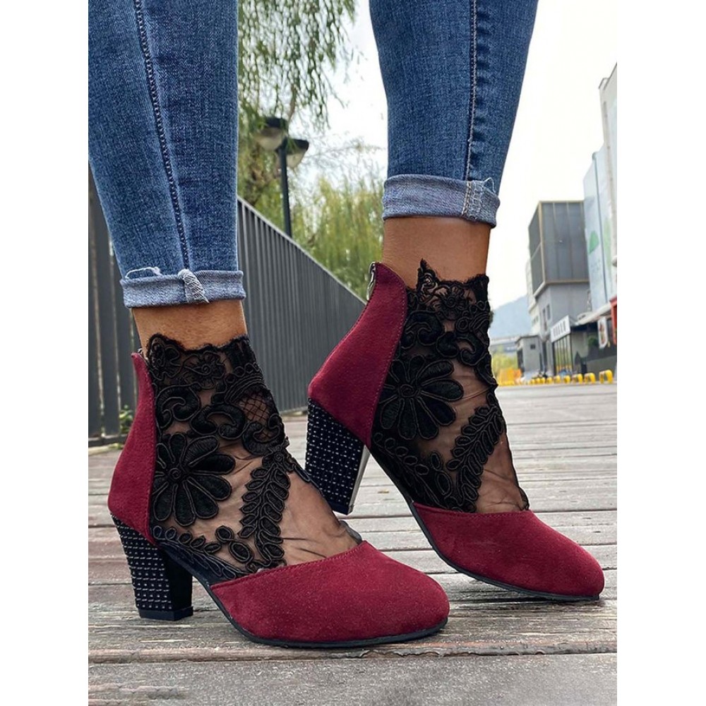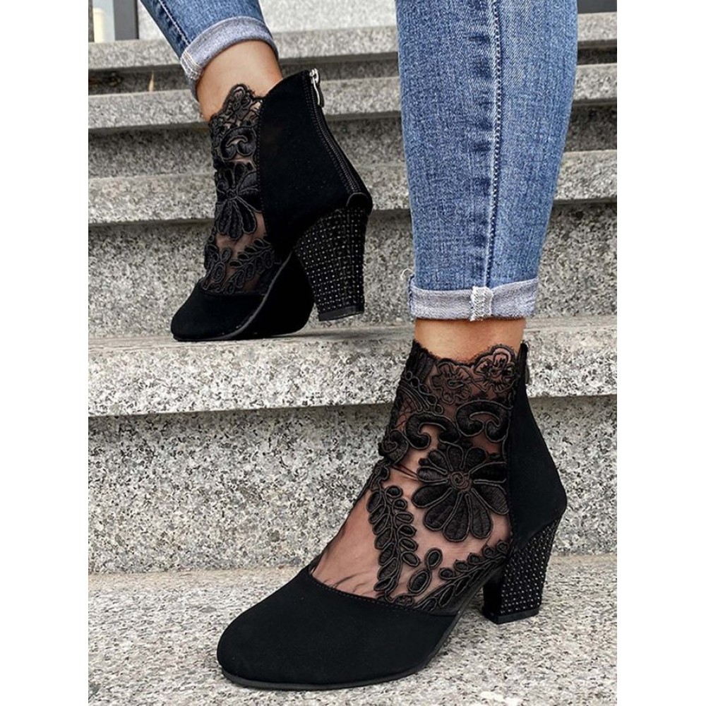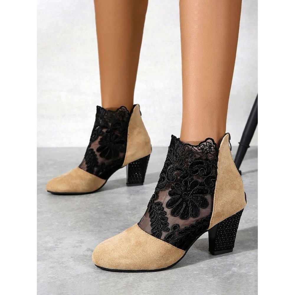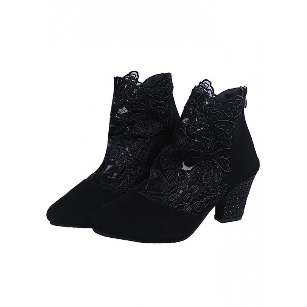 Lace Split Joint Chunky Heel Sandals Boots with Back Zip