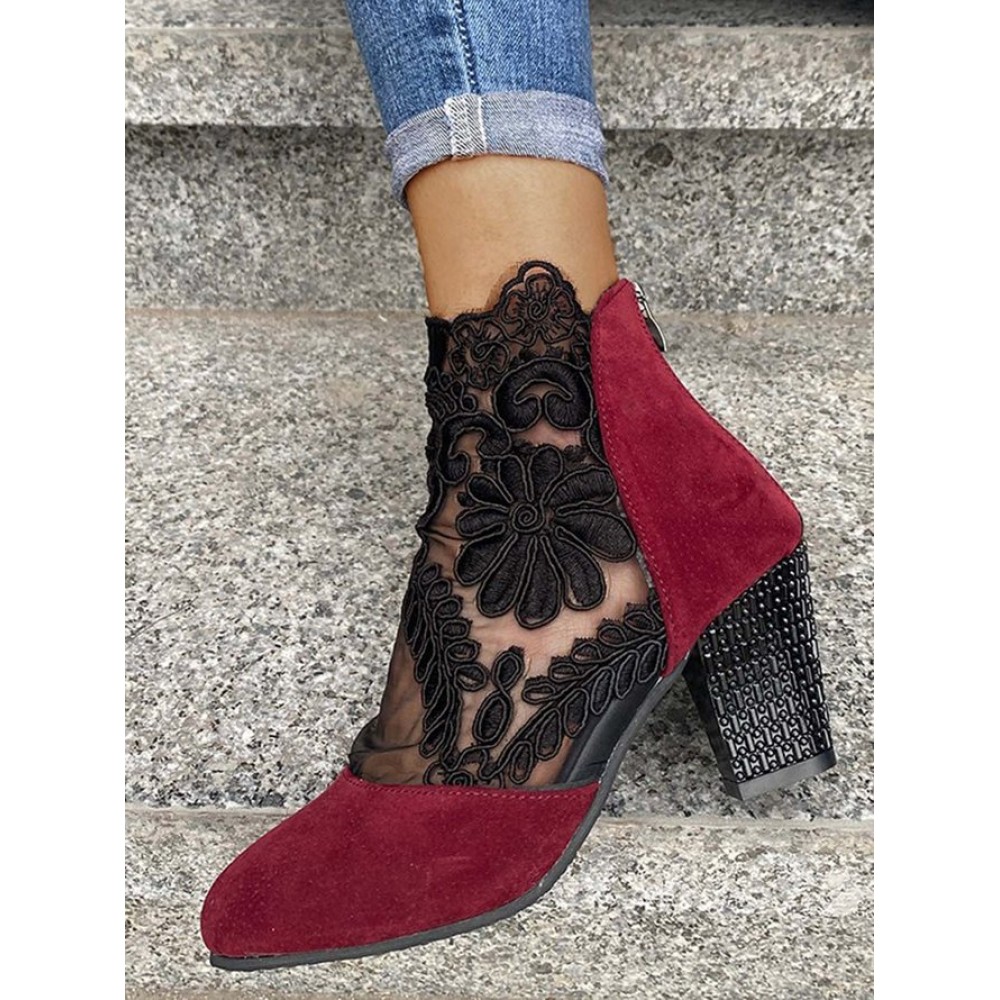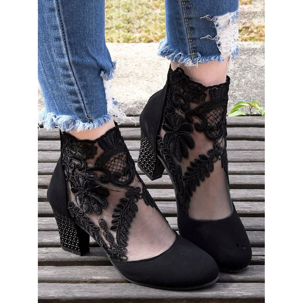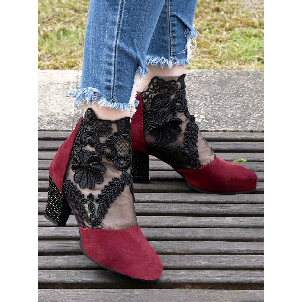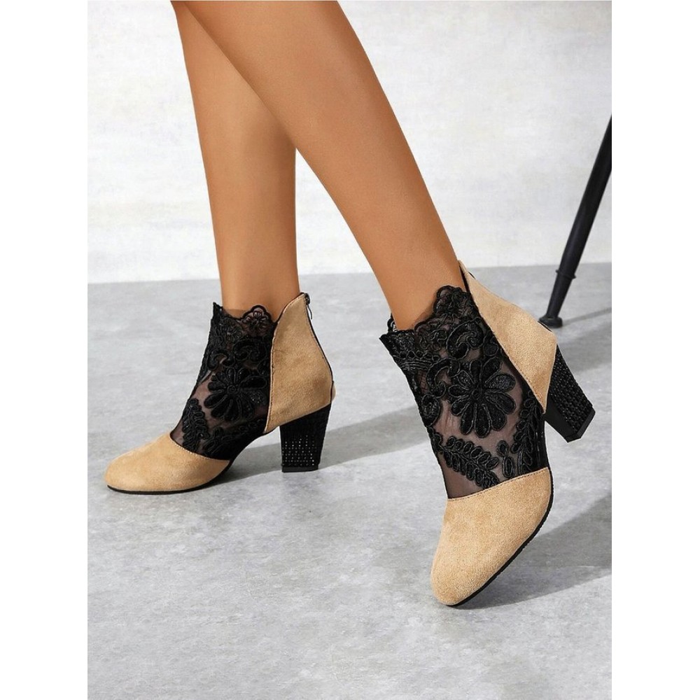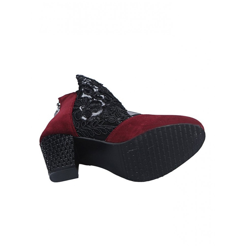 Lace Split Joint Chunky Heel Sandals Boots with Back Zip
