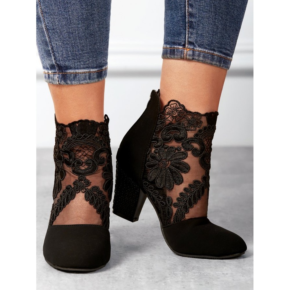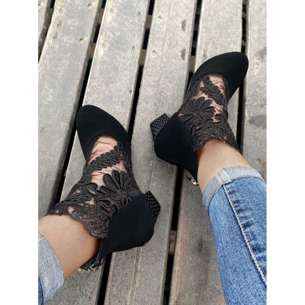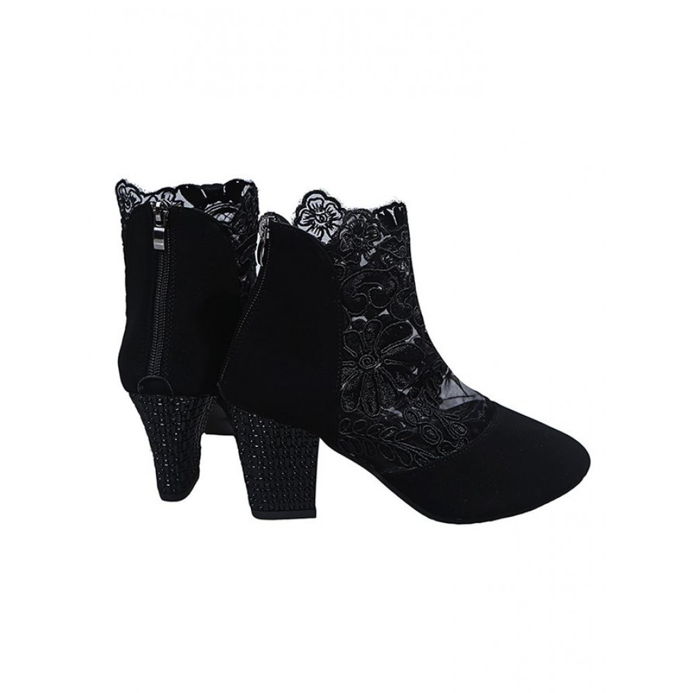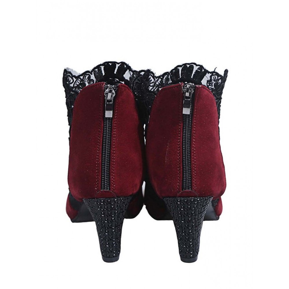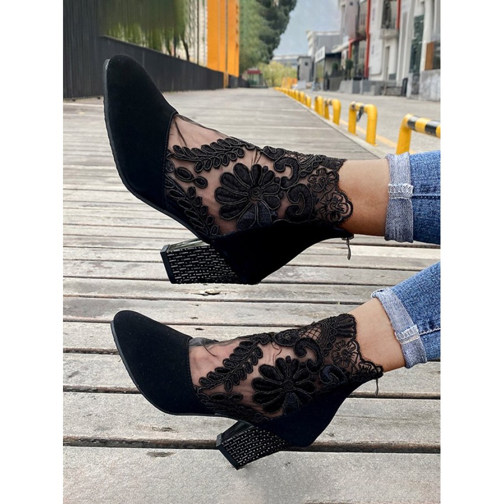 Lace Split Joint Chunky Heel Sandals Boots with Back Zip