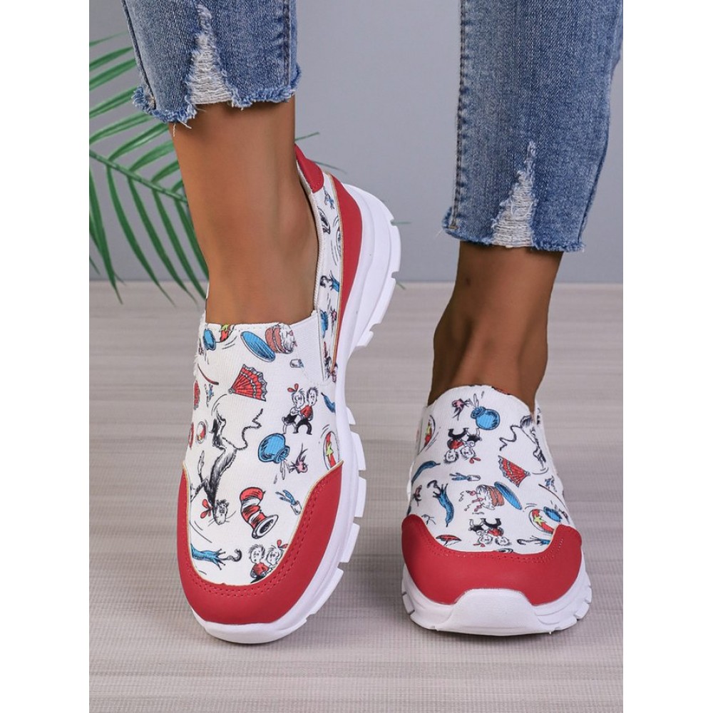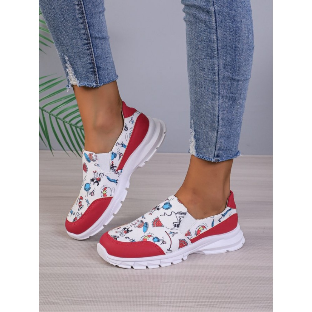 Sports Color Block Wearable Slip On Flat Heel Slip On Printing