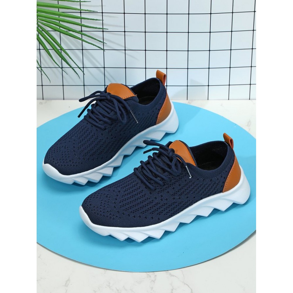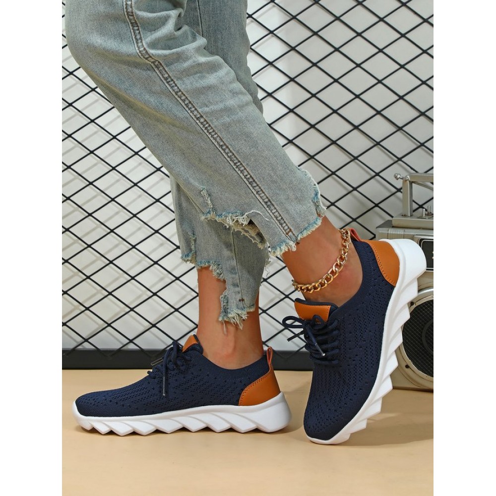 Sports Plain Breathable Lace-Up Flat Heel Fly Woven Shoes
