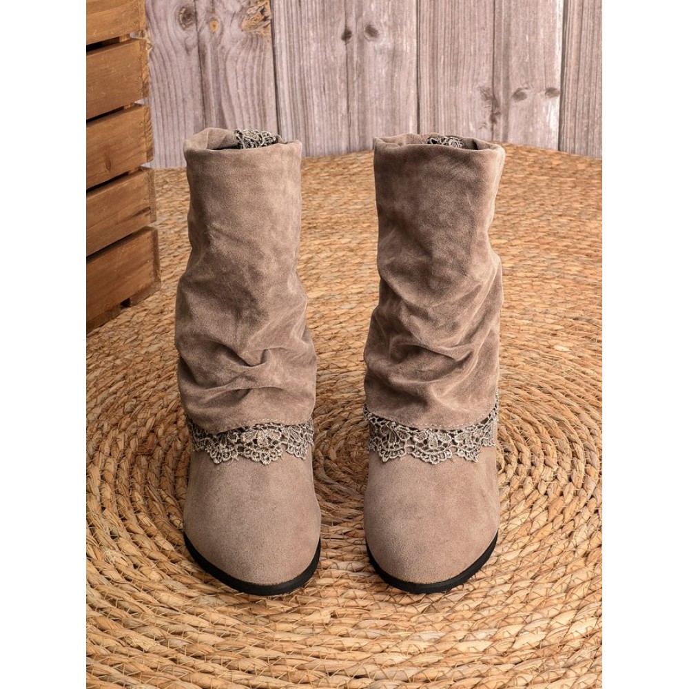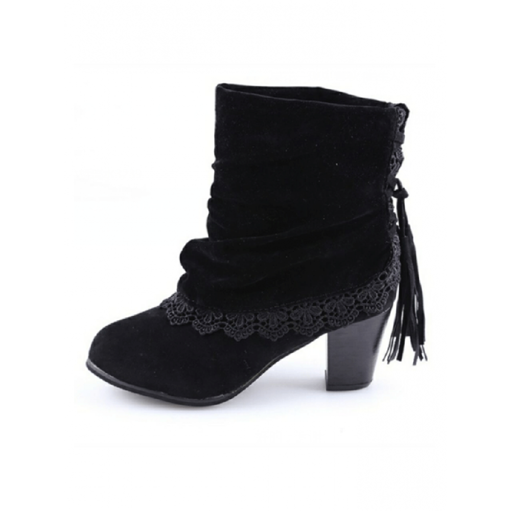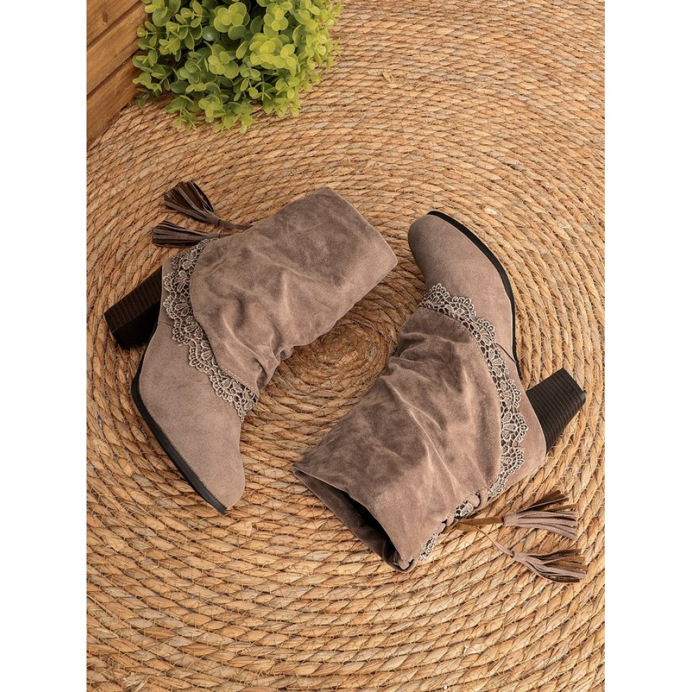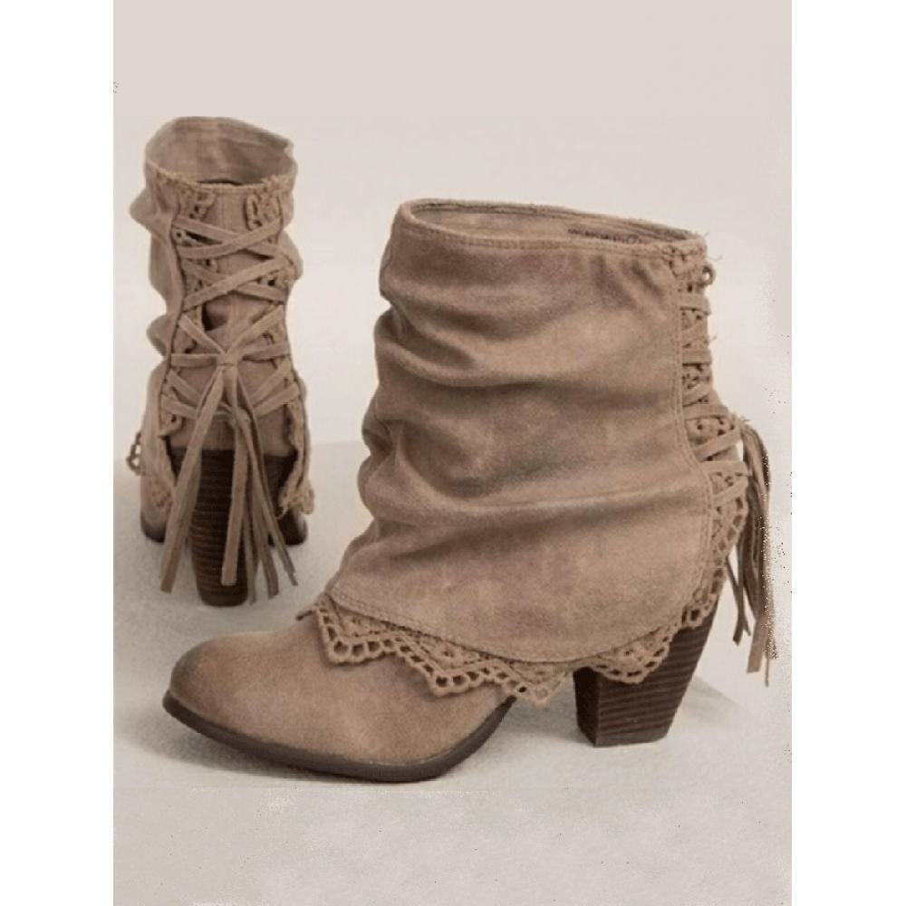 Vintage Lace Flanging Casual Fringed Short Ankle Boots