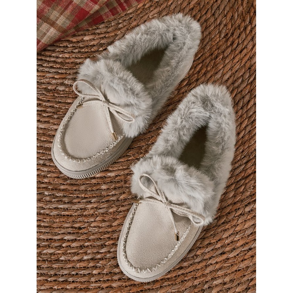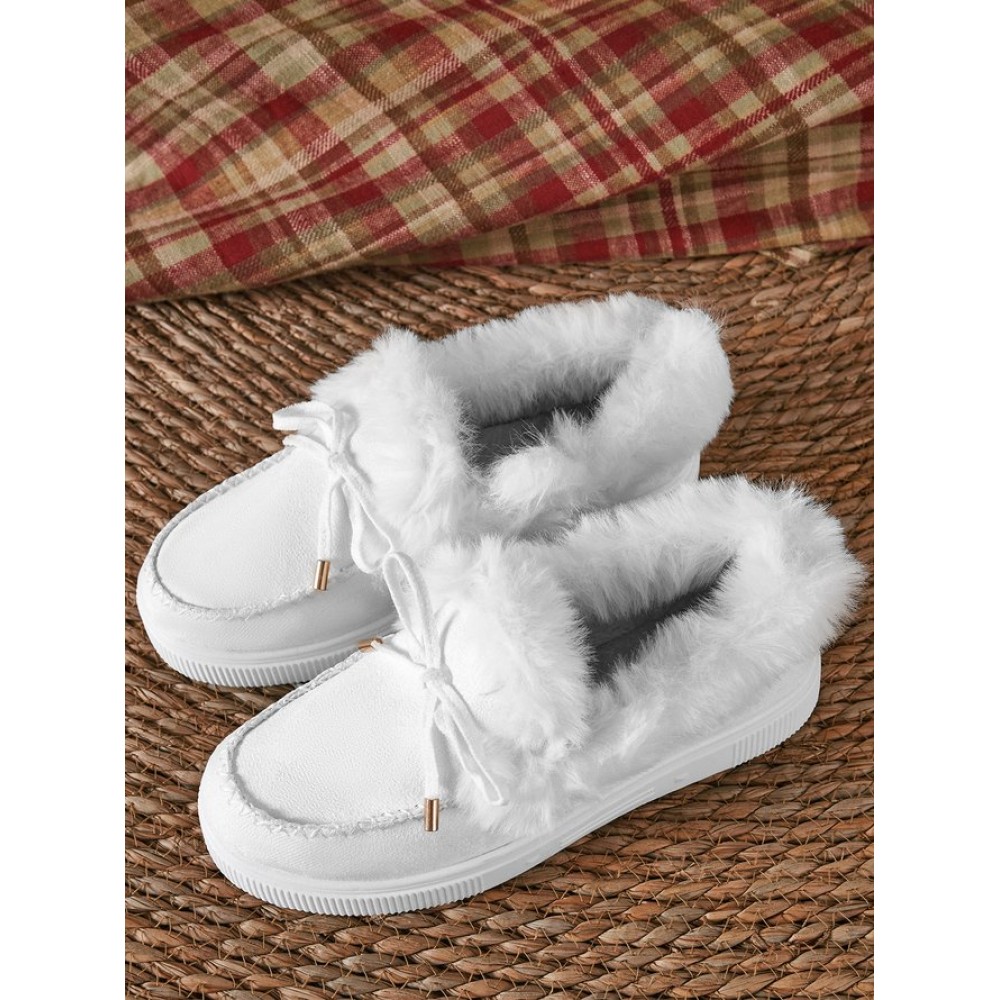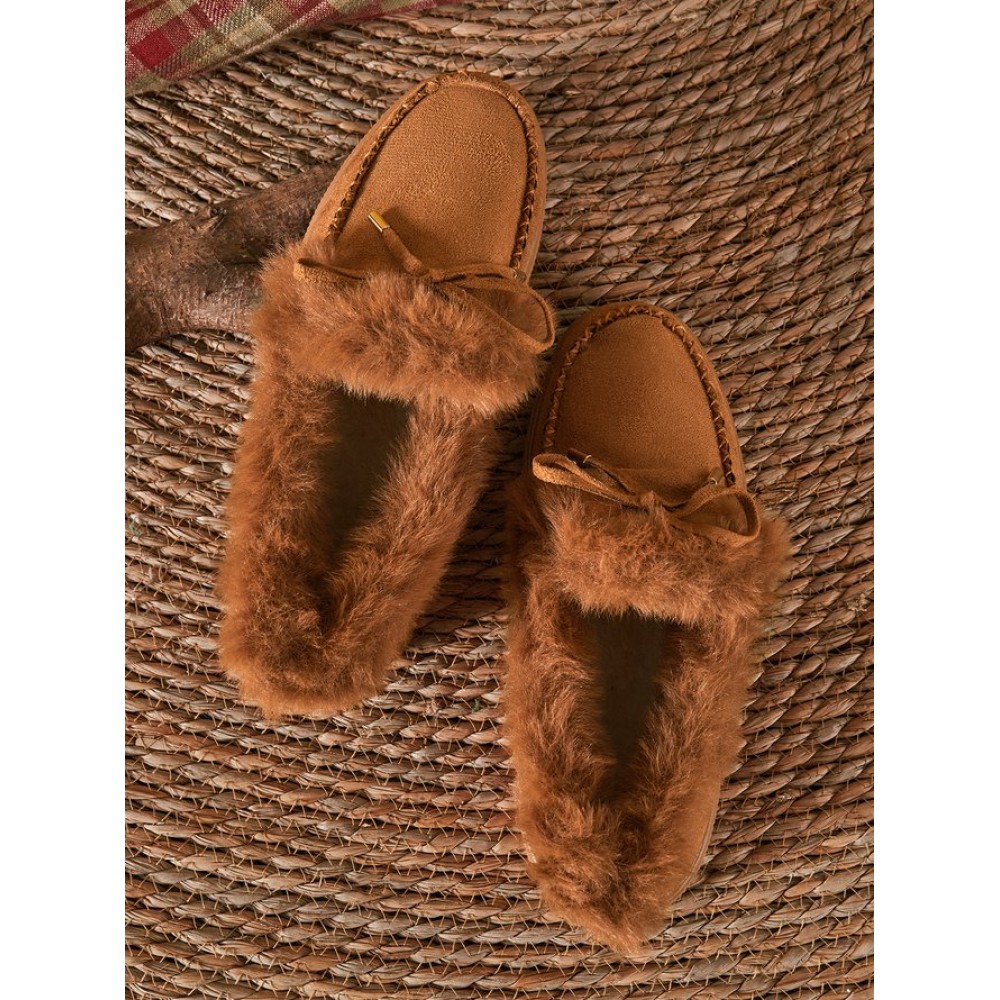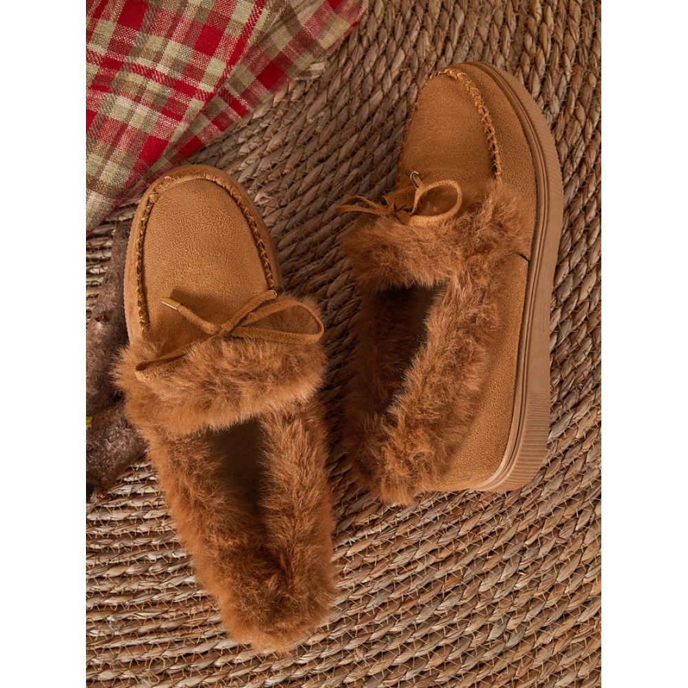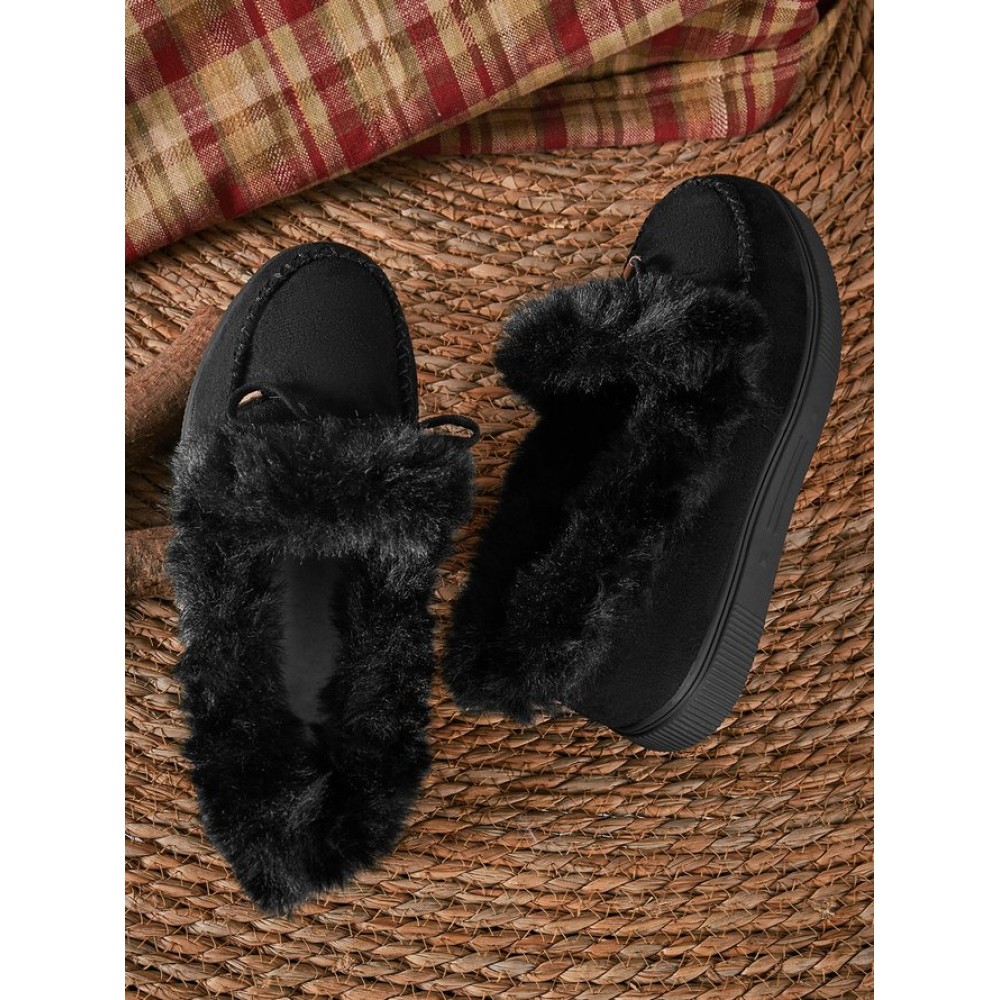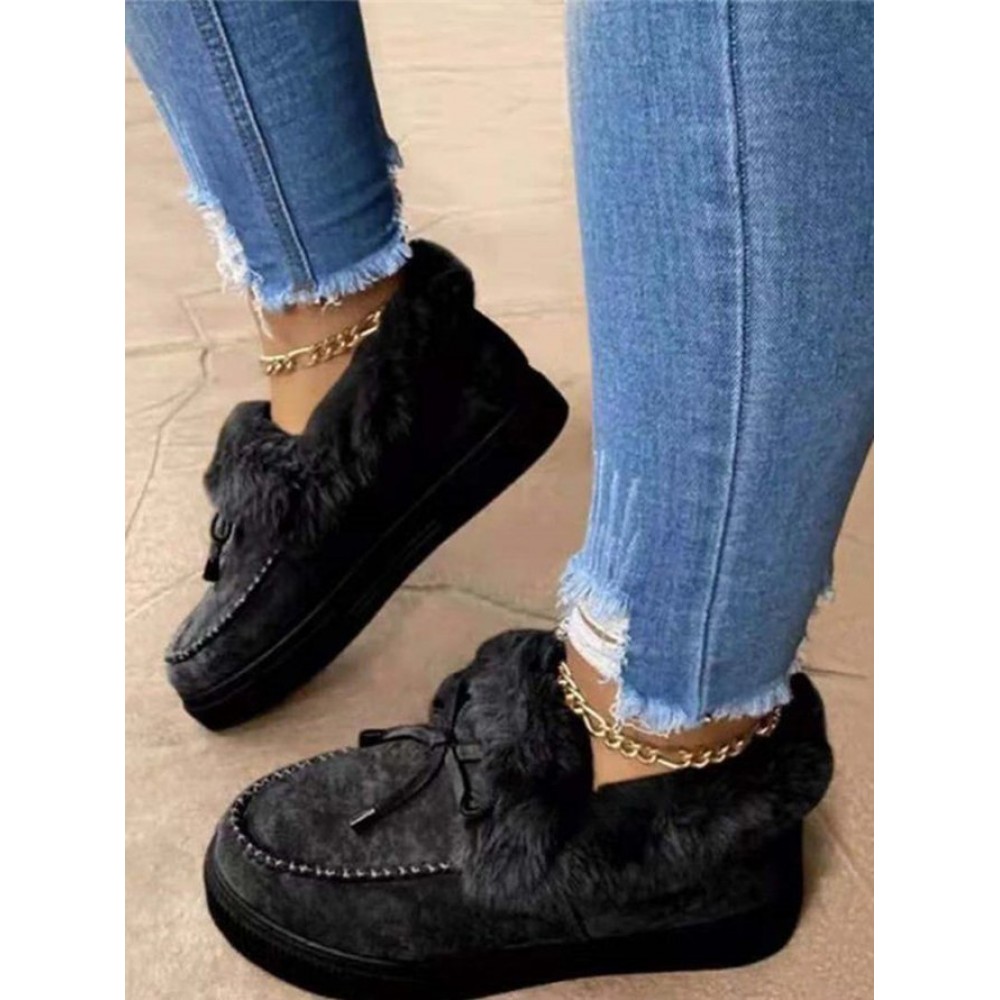 Vintage Plain All Season Wearable Daily Flat Shoes Faux Fur Slip On Deep Mouth Single Shoes for Women