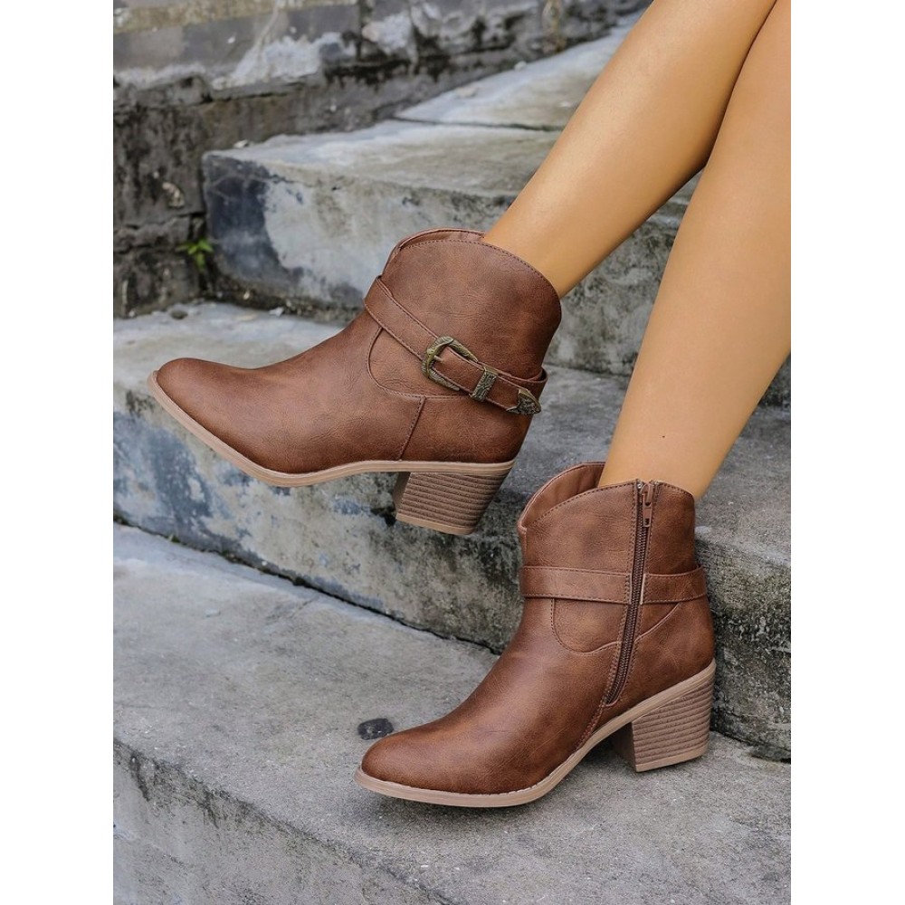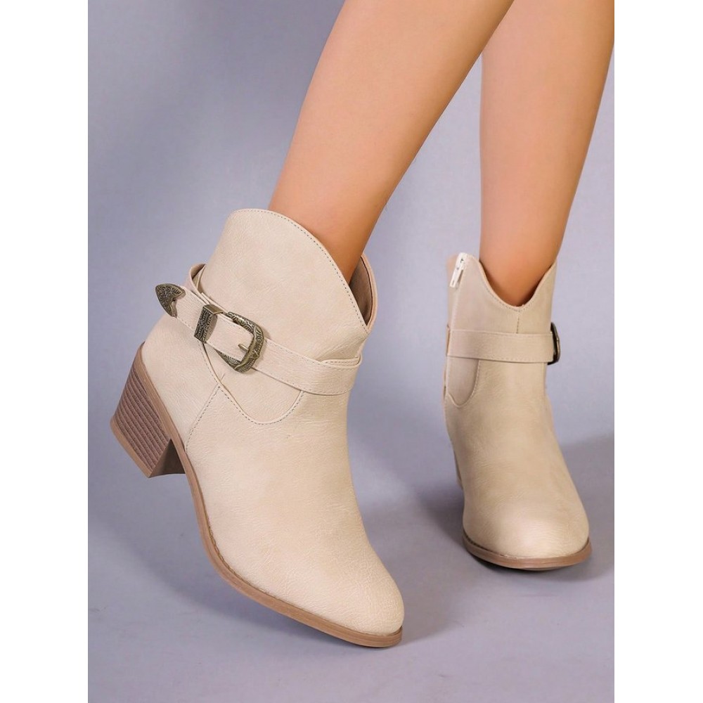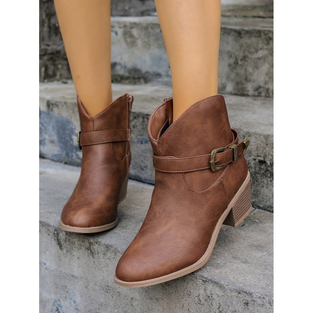 Vintage Plain Non-Slip Zipper Block Heel Cowboy Boots Buckle