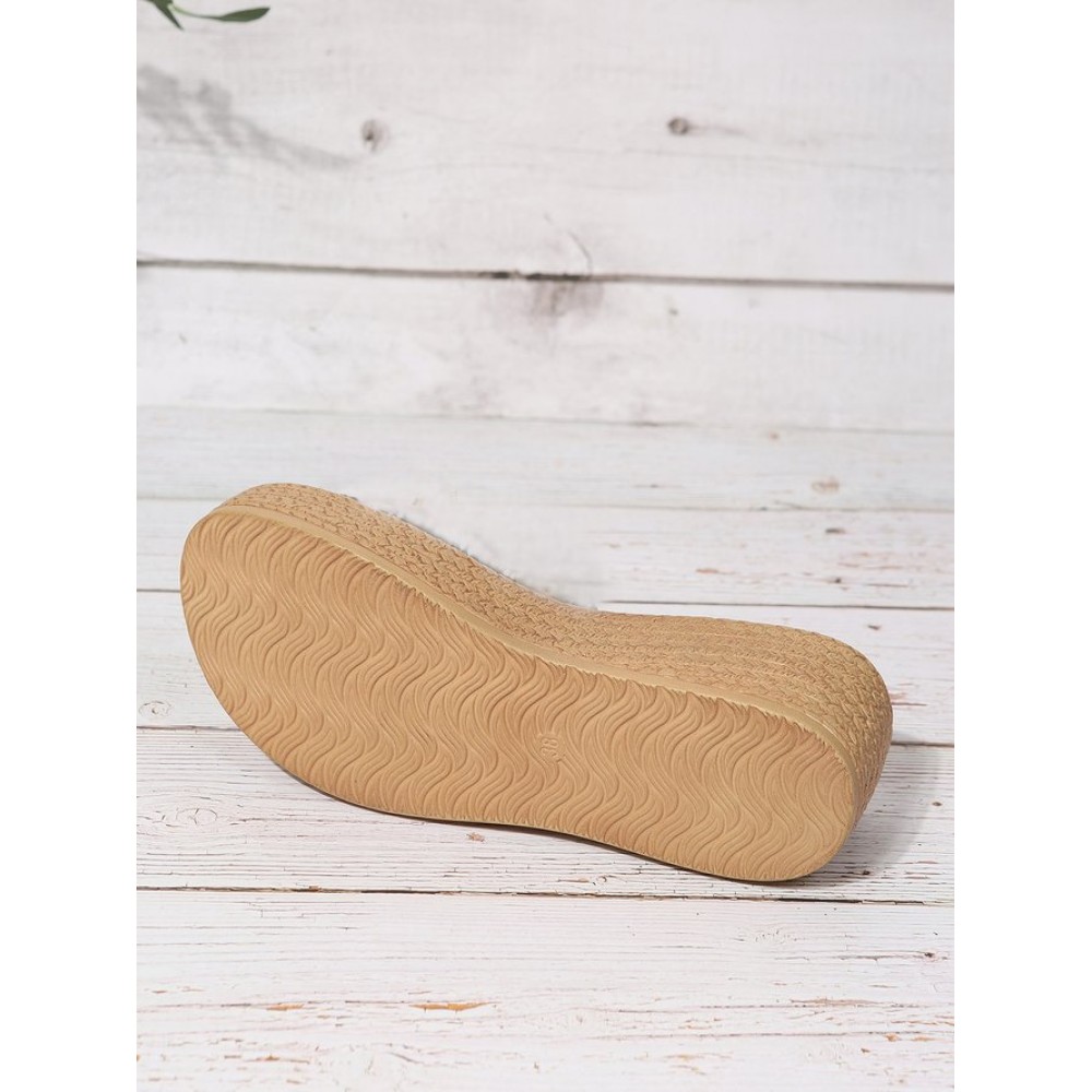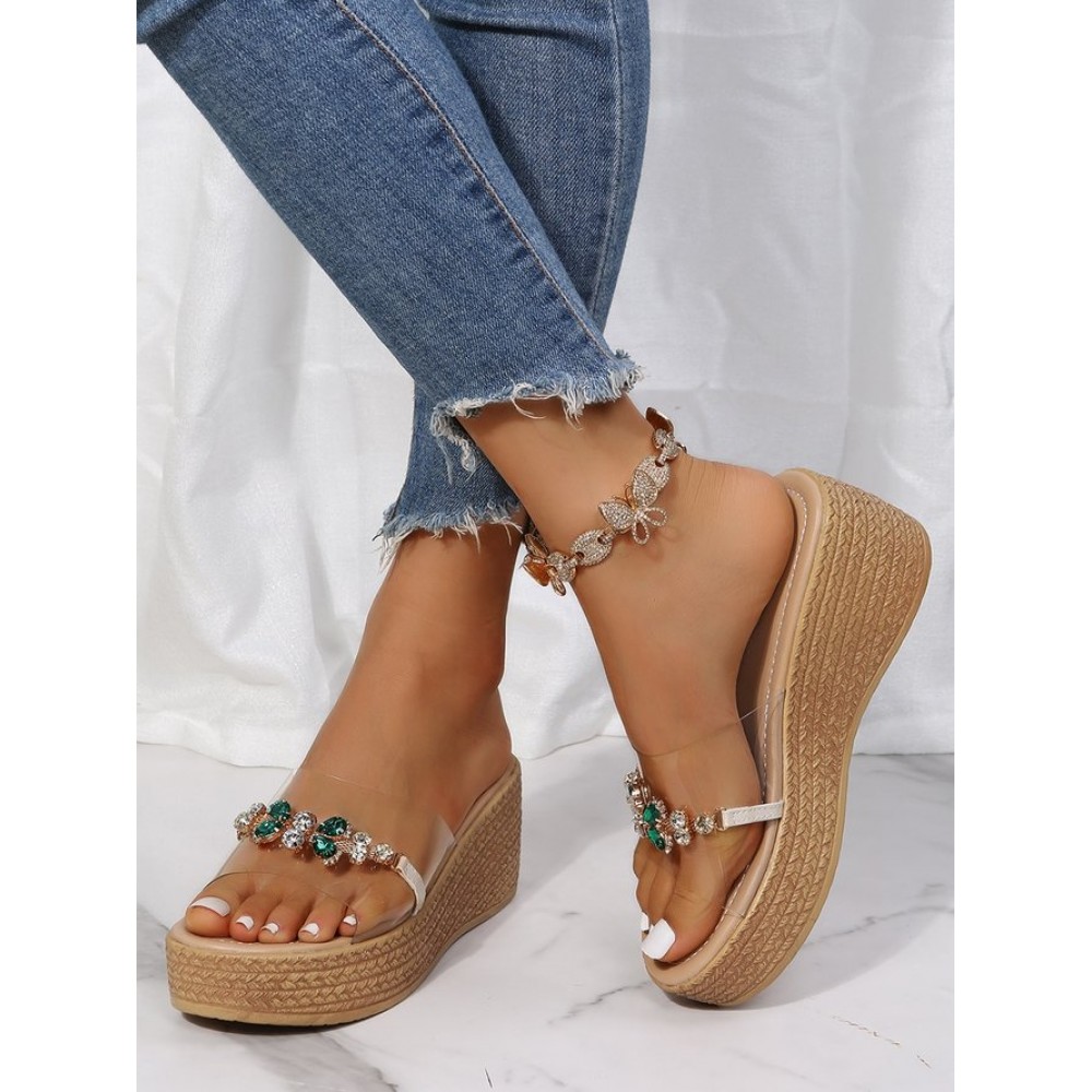 Waterproof Transparent PVC Rhinestone Decoration Holiday Faux Woven Wedge Sandals