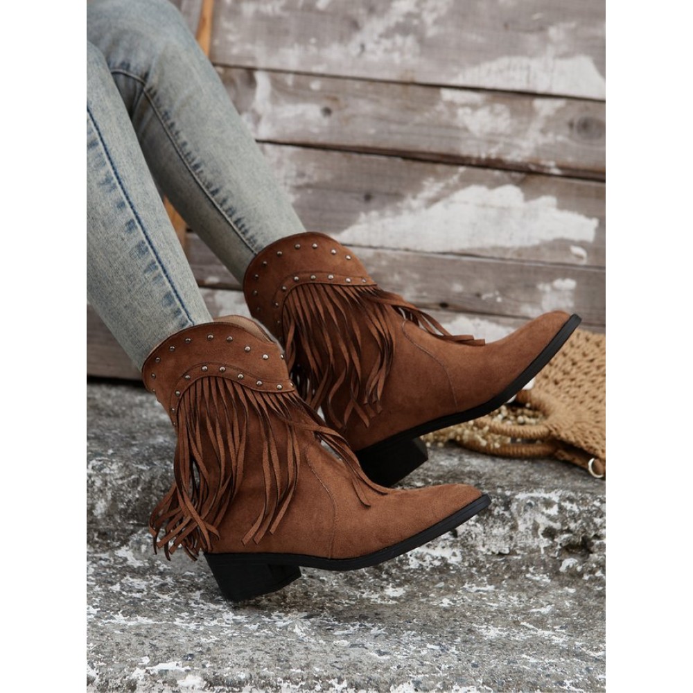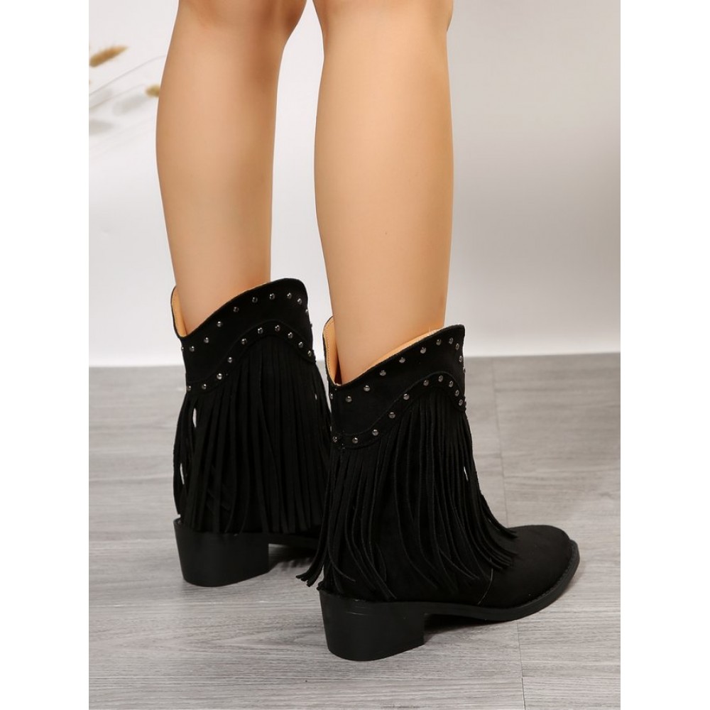 West Style Plain Non-Slip Slip On Block Heel Cowboy Boots Rivet