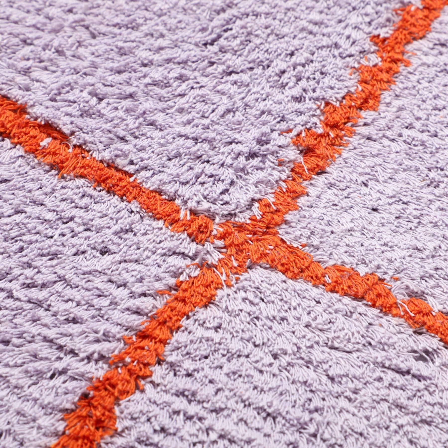 A windowpane pattern rug with an eye-catching combination of pop orange and light purple.