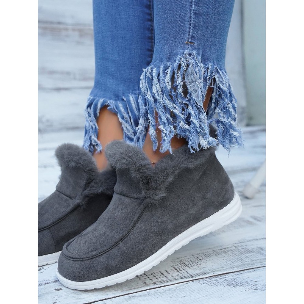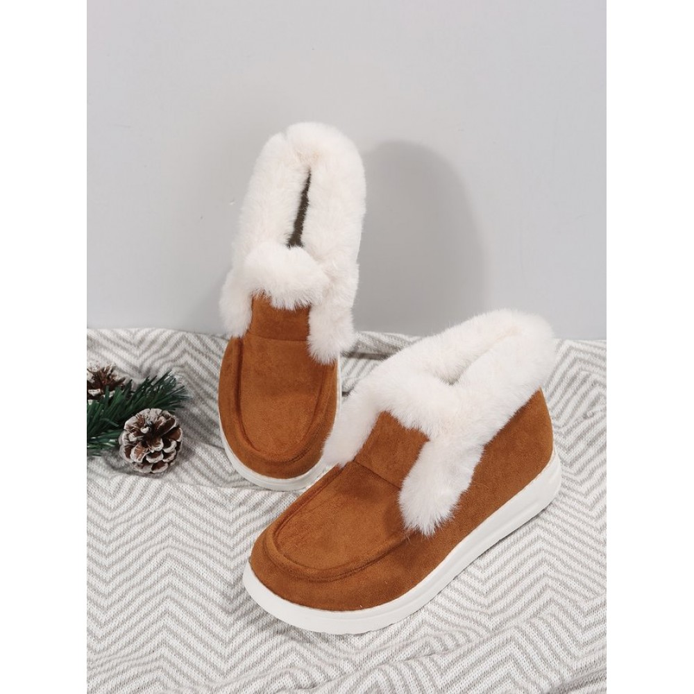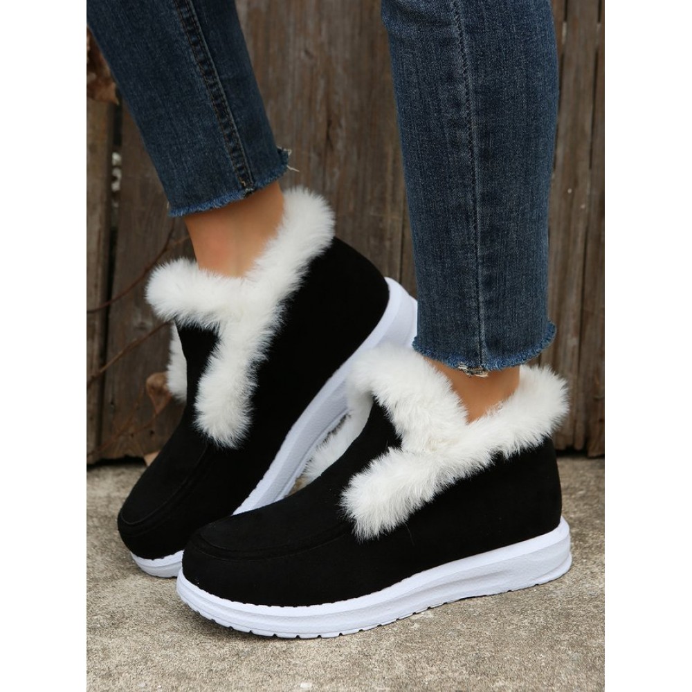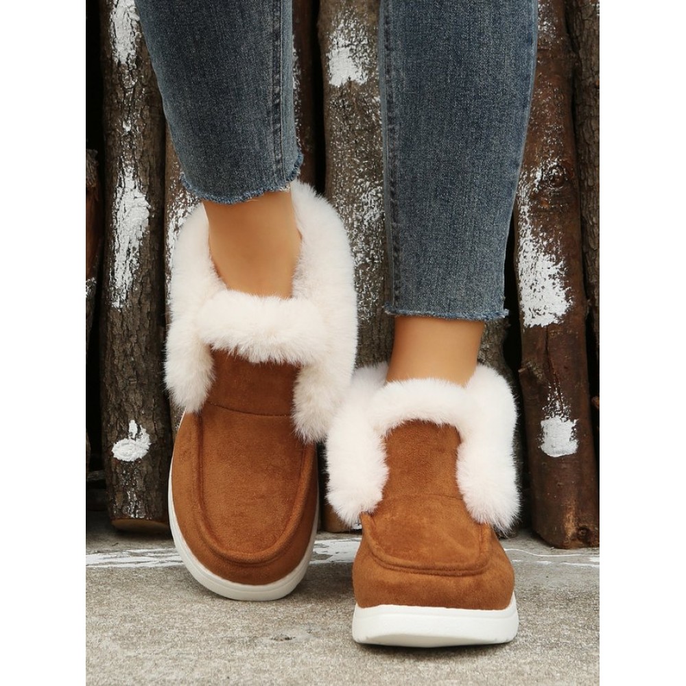 Women’s Split Joint Furry Flat Heel Snow Boots